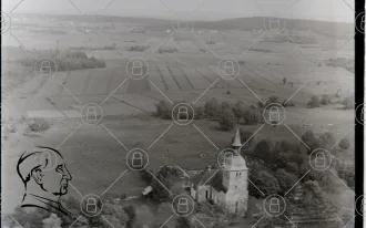 CES.20.47.1. Jomala kyrka från luften. FLygfoto. 1957.