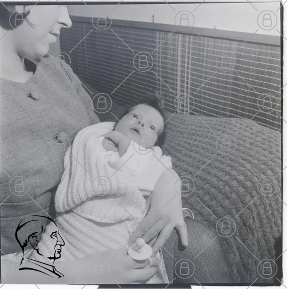 baby, kvinna, amning, nappflaska, filt, soffa, svartvitt, barn, moder, omsorg, familj, kärlek, mjuk, inomhus, hem, vintage, 1960-tal, närhet, trygghet, leende, ögon