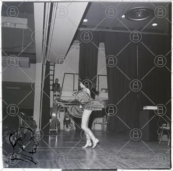 dans, scen, publik, klänning, svartvitt, föreställning, kvinna, rörelse, underhållning, 1960-tal, dansare, musik, show, ljus, skådespel, frisyr, ben, kläder, stil, artisteri