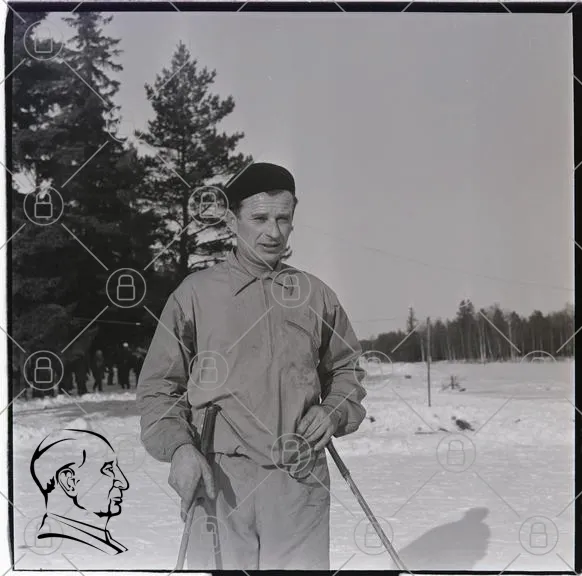 man, skidåkning, snö, skidor, vinter, träd, svartvitt, kläder, stavar, landskap, natur, friluftsliv, sport, traditionell, utomhus, 1900-tal, svensk, aktivitet, vinterlandskap, ensam, bakgrund, snötäckt, beredskap, stil, fotografi, historisk, person, avkoppling, hobby