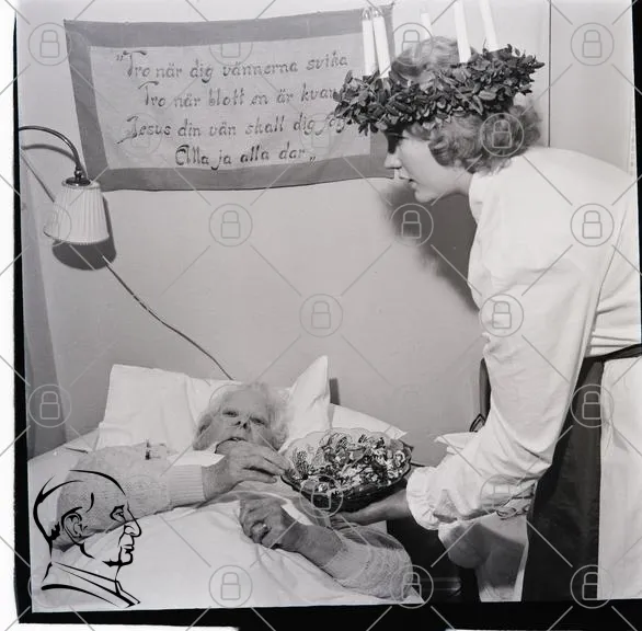 sjukhus, vård, äldre, kvinna, man, säng, blommor, ljus, tradition, jul, hälsa, omsorg, familj, kärlek, hjälp, omtanke, sjuksköterska, fest, gemenskap, glädje, minnen, stöd, omtänksamhet, vårdpersonal, hem, sjukhusmiljö, jultradition, ljuskrans, omtänksam, vårdande