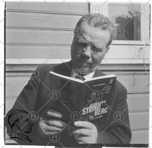 man, bok, August Strindberg, läsande, svartvitt, porträtt, kläder, fönster, utomhus, intellektuell, kultur, litteratur, 1900-tal, ansiktsuttryck, koncentration, svensk, författare, litterär, historia, fotografi, tradition, stil, bildkonst, människa, hobby, utbildning, intresse, text, omslag, litterär analys