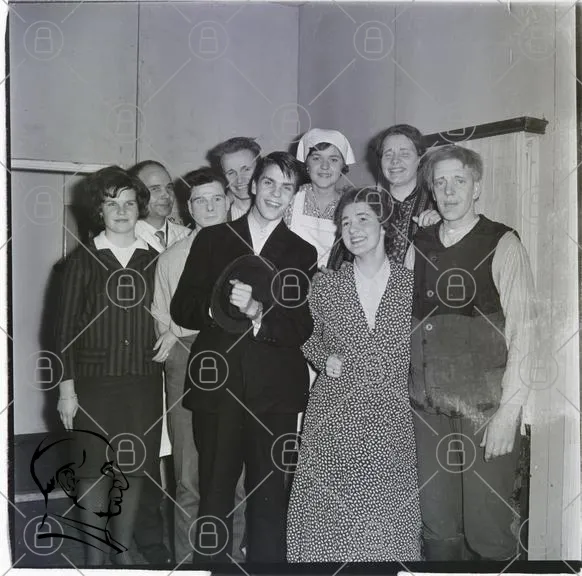 grupp, människor, svartvitt, kläder, leende, 1900-tal, porträtt, inomhus, traditionell, hatt, kvinna, man, ungdomar, vuxna, kostymer, frisyrer, familj, samling, historisk, fotografi