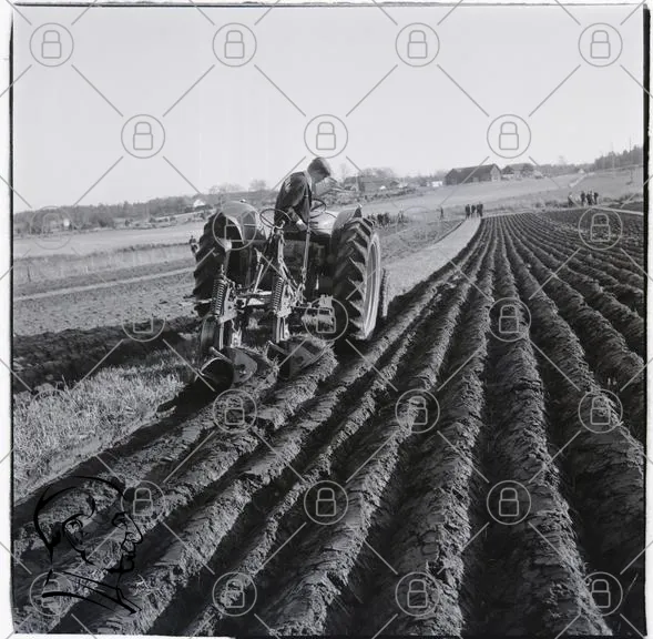 traktor, plöjning, åker, jordbruk, landskap, fält, maskin, lantbruk, svartvit, odling, plöjningslinjer, jord, arbete, landsbygd, skörd, bönder, traditionellt, natur, utomhus, sommar, växtlighet