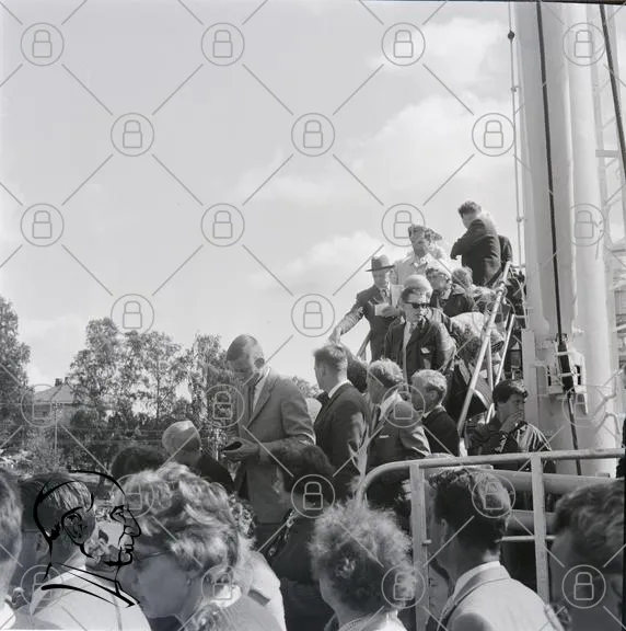 historisk, svartvit, människor, samling, utomhus, kläder, 1960-tal, evenemang, träd, byggnader, publik, ledare, fotografering, ceremon, ansikten, stil, tradition, grupp, skådespelare, uppträdande, minnen, kultur, samhälle, festligheter, minnesvärd, aktivitet, samarbete, gemenskap, historia