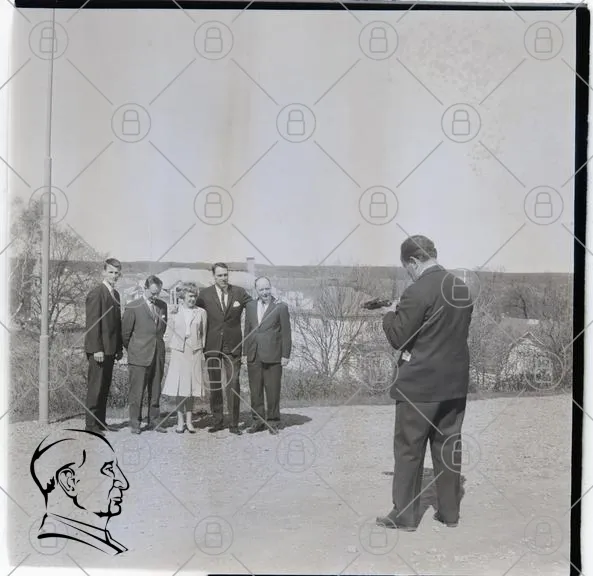 grupp, människor, svartvitt, kläder, kostymer, kvinna, man, fotografering, utomhus, landskap, träd, byggnader, 1900-tal, stil, porträtt, samling, tradition, familj, vänner, minne