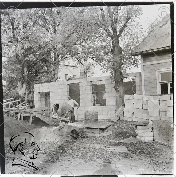 byggarbetsplats, murverk, cementblandare, byggmaterial, träd, hus, byggnad, sand, stenblock, arbetare, konstruktion, byggprocess, grus, verktyg, byggnadsställning, gammal foto, utomhus, landskap, renovering, hantverkare, byggprojekt, betong, byggnadsblock, arbetsplats, traditionell byggnad, byggnadsarbete, byggnadsindustri, byggnadsarbetare, byggnadsplats