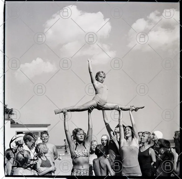 strand, barn, simma, akrobatik, sommar, familj, lek, vatten, gymnastik, sol, glädje, aktiviteter, grupp, ungdomar, kläder, sand, himmel, moln, prestation, samarbete, fotografering, minnen, roligt, sport, tradition, utomhus, nöje, balans, uppvisning, skratt