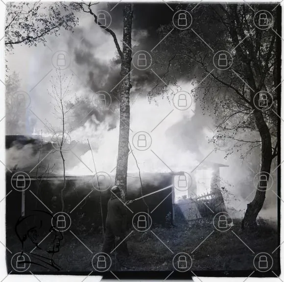 brand, brandman, rök, träd, byggnad, släckning, eld, natur, katastrof, svartvit, vatten, säkerhet, räddning, skog, brandfilt, brandbil, brandstation, nödsituation, utomhus, arbete