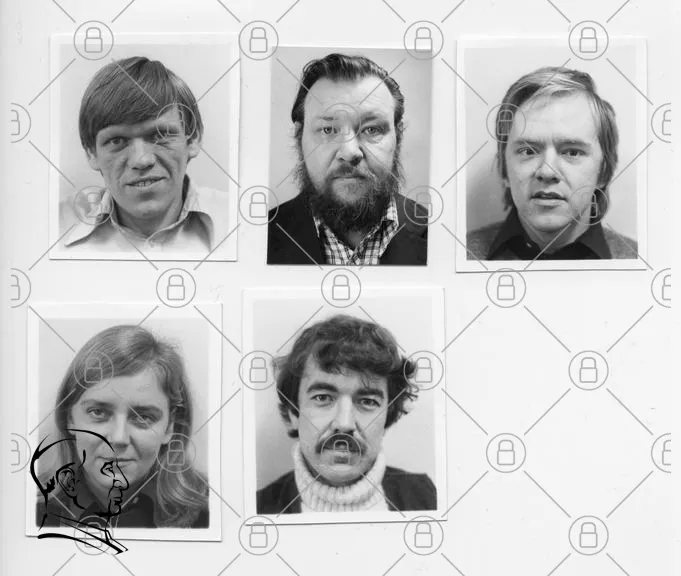 svartvit, fotografier, porträtt, människor, ansikten, 1970-tal, retro, vintage, man, kvinna, skägg, hår, kläder, uttryck, identitet, grupp, stil, klassisk, nostalgi, fotografi, dokumentation, social, kultur, historia, ansiktsuttryck, svartvitt, gammal, minnen, personligheter