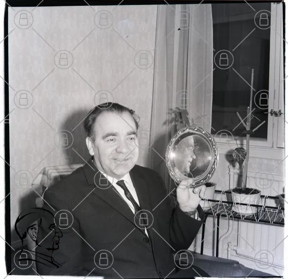 man, porträtt, spegel, inomhus, svartvit, kostym, leende, möbler, fönster, växt, 1960-tal, fotografi, hem, traditionell, stil, retro, interiör, glas, plåt, bild