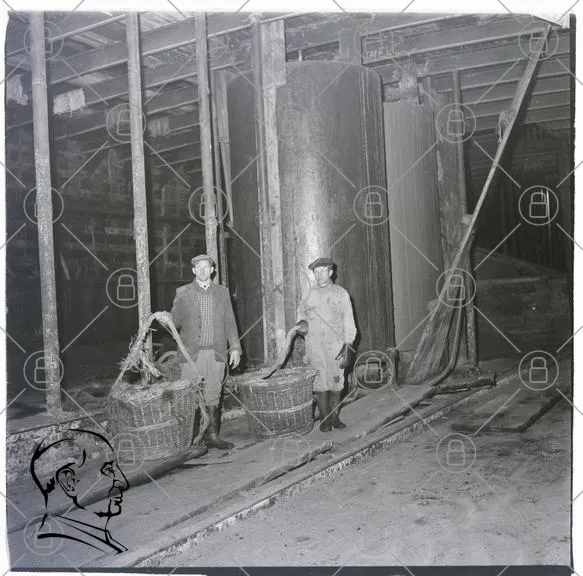 människor, korgar, arbete, lager, industri, svartvitt, historisk, inomhus, trä, transport, växter, traditionellt, hantverk, miljö, 1900-tal, samarbete, redskap, lastning, jordbruk, kultur, män, kläder, arbetskläder, förr, hantverksarbete, last, skörd, naturprodukter, lokal