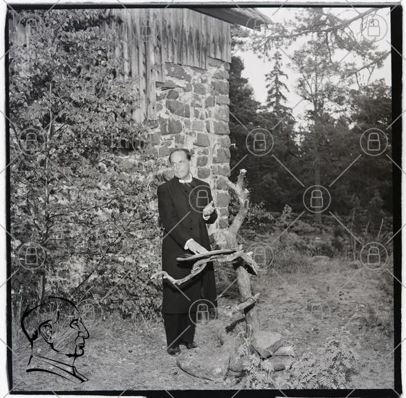 man, svartvitt, kläder, natur, träd, stenhus, landskap, präst, gammal, traditionell, fotografi, skog, utomhus, stativ, grenar, 1900-tal, svensk, kultur, historia, porträtt, stillhet, ensam, vintage, gammal byggnad, landsbygden, konst, naturmaterial, textur, detaljer, skugga