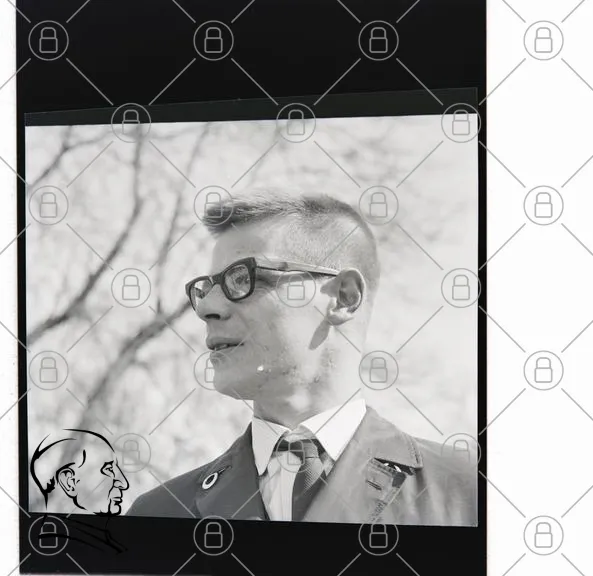 man, glasögon, kostym, svartvitt, porträtt, utomhus, träd, 1960-tal, stil, ansiktsuttryck, mode, vintage, fotografi, mänsklig, kläder, accessoarer, profil, ungdom, elegant, historisk, svart, vit, bakgrund, detaljer, uttryck, person