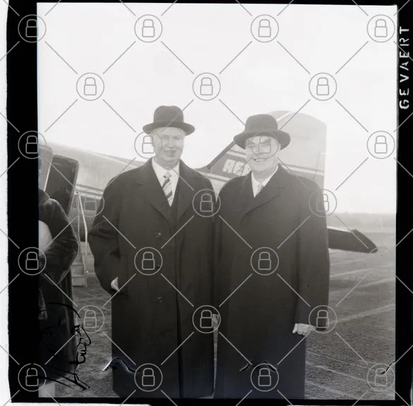 män, kostymer, hattar, flygplan, svartvitt, 1940-tal, affärsmän, fotografi, utomhus, vinter, stil, kläder, resande, historiskt, porträtt, vänner, professionella, formella, möte, landskap