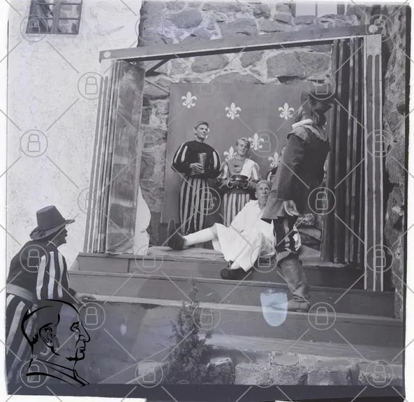 teater, skådespelare, kostymer, scen, föreställning, historisk, svartvitt, publik, kläder, traditionell, drama, kultur, 1900-tal, konst, performance, rekvisita, bakgrund, maskerad, uttryck, samspel, roll, teaterkonst, folklig, underhållning, gest, mimik, scenografi, folkloristisk, uppträdande, gemenskap