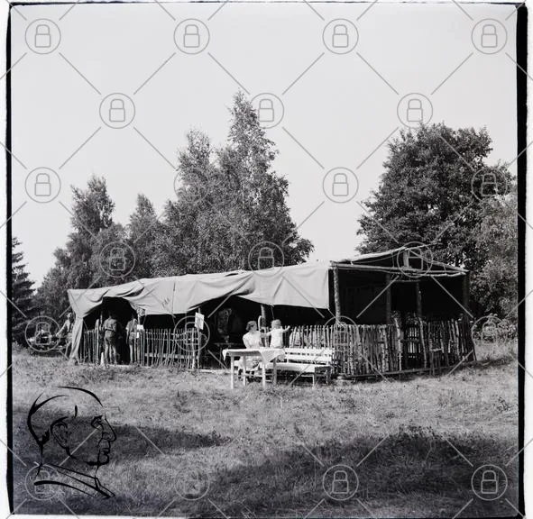 tält, utomhus, skog, människor, bord, stolar, sommar, natur, träd, gräs, aktivitet, samling, fritid, landskap, himmel