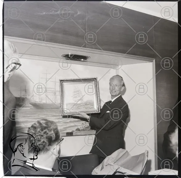 möte, presentation, tavla, segelbåt, man, kostym, kontor, väggkonst, svartvitt, 1960-tal, affärsmän, diskussion, marin, konstverk, inramad, bakgrund, grupp, professionell, företag, historia