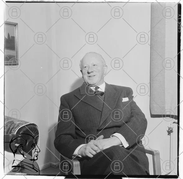 man, kostym, slips, leende, kontor, stol, svartvitt, inomhus, möbler, porträtt, 1900-tal, gammal, fotografi, vägg, fönster, tavla, avslappnad, klädd, affärsman, stil, traditionell, ansikte, uttryck, sittande, elegant, professionell, historia, retro, klassisk, interiör