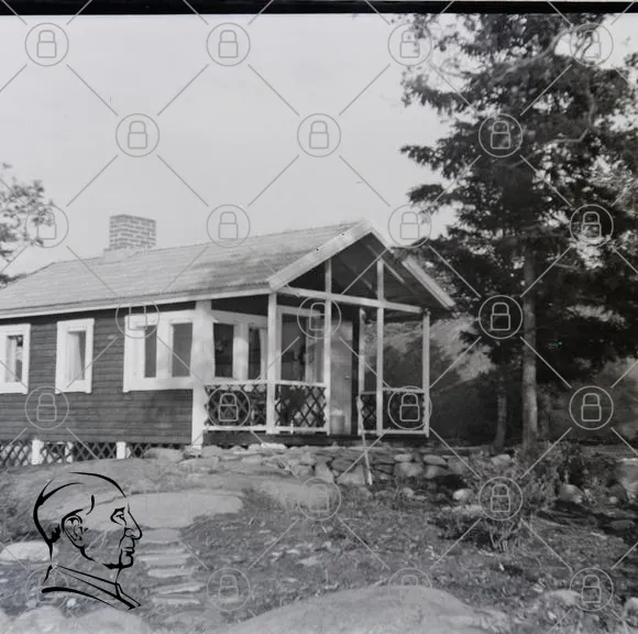 hus, stuga, natur, träd, sten, veranda, tak, fönster, landskap, svartvit, byggnad, sommar, utomhus, arkitektur, svensk, landsbygd, enkel, mysig, traditionell, avkoppling, fritid, semester, lugn, stillhet, miljö, grönska, panorama, hem, bostad, gård