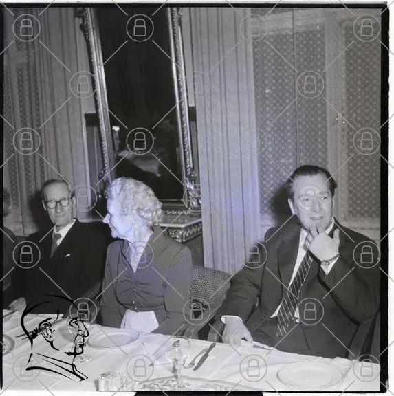middag, sällskap, kläder, bord, glas, dukning, män, kvinnor, 1950-tal, svartvitt, fest, samtal, eleganta, restaurang, inredning, spegel, stolar, uttryck, socialt, samvaro