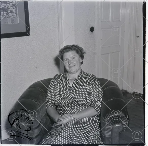 kvinna, soffa, svartvit, klänning, prickar, leende, inomhus, 1900-tal, möbler, hem, porträtt, vintage, interiör, sittande, klassisk, familj, nostalgisk, stil, kvinnohistoria, personlig, traditionell, hemtrevlig, gammaldags, fotografi, minnen, vardag, atmosfär, rum, detaljer, ansikte