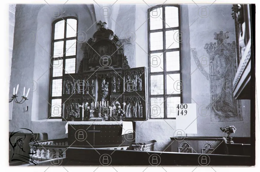kyrka, altare, träskulptur, fönster, bänkar, religiös, svartvit, konstverk, medeltid, detaljer, ljus, väggmålningar, candelabrar, inredning, historisk, kulturarv, symbolik, andakt, plats, tradition, arkitektur, skulpturer, belysning, tabernakel, altaruppsats, kyrkorum, nummer, 400, 149