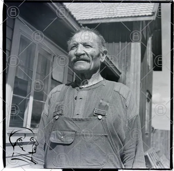man, gammal, mustasch, överallsbyxor, svartvitt, utomhus, byggnad, fönster, trä, landsbygd, porträtt, traditionell, kläder, ansiktsuttryck, sommar, natur, historia, kultur, fotografi, vintage