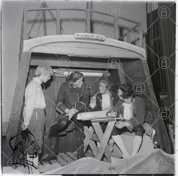 teater, skådespelare, kostymer, båt, Hispaniola, scen, 1800-tal, dramatisering, manus, rekvisita, föreställning, historisk, kostymdrama, teaterproduktion, rollspel, scenografi, grupp, interaktion, skådespel, berättelse, äventyr, kultur, underhållning, teaterkonst, skådespel, publik, tradition, kreativitet, konst