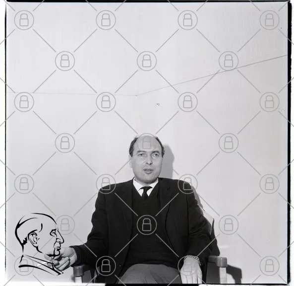 man, sittande, kostym, cigarett, svartvitt, inomhus, möbel, vägg, uttryck, 1960-tal, professionell, intervju, kontor, stil, klassisk, ansikte, manlig, kläder, gest, avslappnad, fokus, samtal, kroppsspråk, porträtt, tidsepok, atmosfär, personlig, karaktär, uttrycksfull