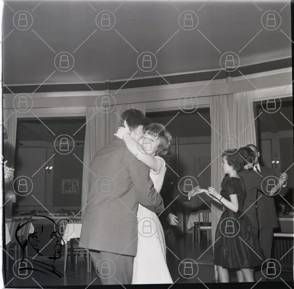 dans, par, fest, klänning, 1960-tal, romantik, sällskap, musik, glädje, minnen, elegans, belysning, restaurang, socialt, par, dansgolv, kläder, stil, interiör, festligheter