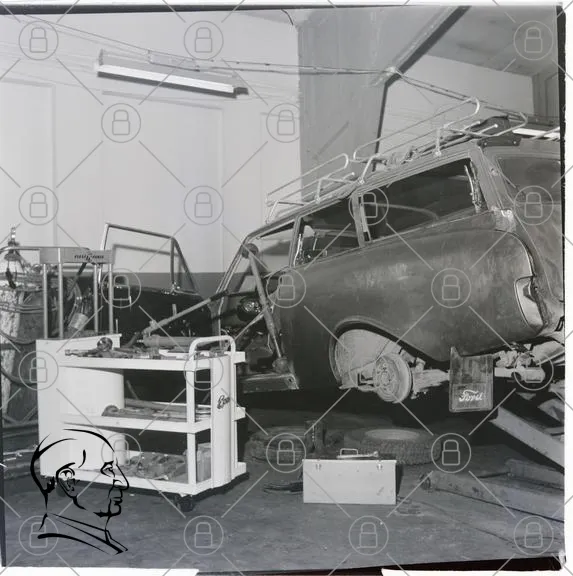 bil, garage, verkstad, Ford, reparation, verktyg, däck, gammal, skrot, mekaniker, belysning, arbetsyta, rost, bilskrot, underhåll, bilmodell, reservdelar, maskiner, industri, teknik