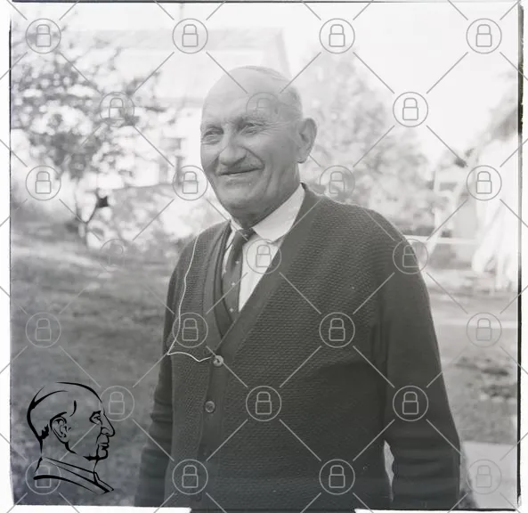 gammal man, leende, svartvitt, trädgård, kläder, kofta, skjorta, slips, utomhus, bakgrund, hus, natur, porträtt, äldre, ansikte, vänlig, fotografi, nostalgi, traditionell, stil, manlig, person, sommar, landskap, historia, kultur, minnen, enkelhet, livserfarenhet, glädje