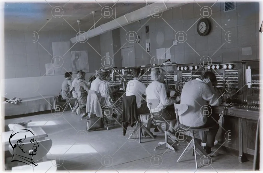 telefonist, telefonväxel, kontor, svartvitt, kvinnor, arbete, 1950-tal, retro, kommunikation, teknik, vintage, kontorsmiljö, telefoner, bänkar, kläder, tid, arbetsplats, samarbete, historisk, telefonlinjer, kontorsutrustning, sittande, telefonjack, klocka, vägg, inredning, arbetsgrupp, telefonistjobb, profession, tradition, kontorsliv
