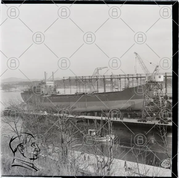 fartyg, skepp, varv, byggnation, industri, trä, vatten, kran, lastfartyg, hamn, trädkant, svartvit, konstruktion, transport, sjöfart, marina, arbetsplats, maskiner, lastning, sjö