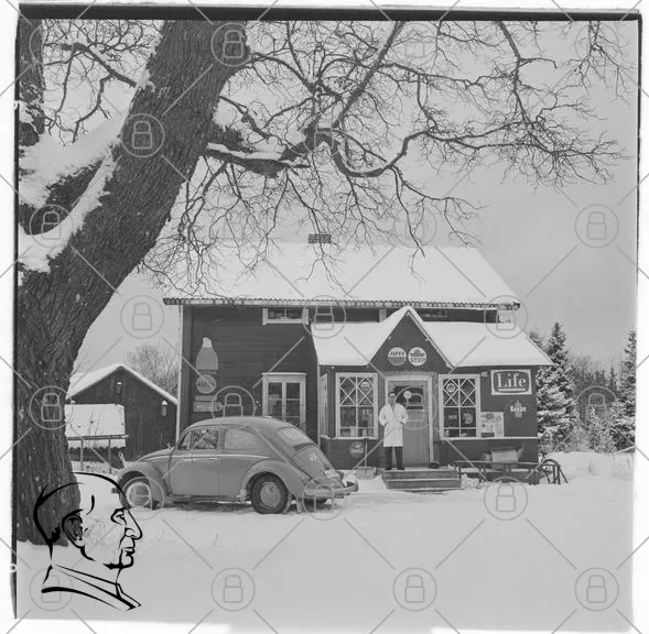 snö, hus, butik, gammal bil, vinter, träd, skyltar, person, landskap, svartvitt, landsbygd, kallt, retro, byggnad, dörr, fönster, sittplatser, natur, stillhet, traditionell, gammaldags, reklam, livsmedel, avskildhet, lugn, snötäckt, atmosfär, enkelhet, charm, historia