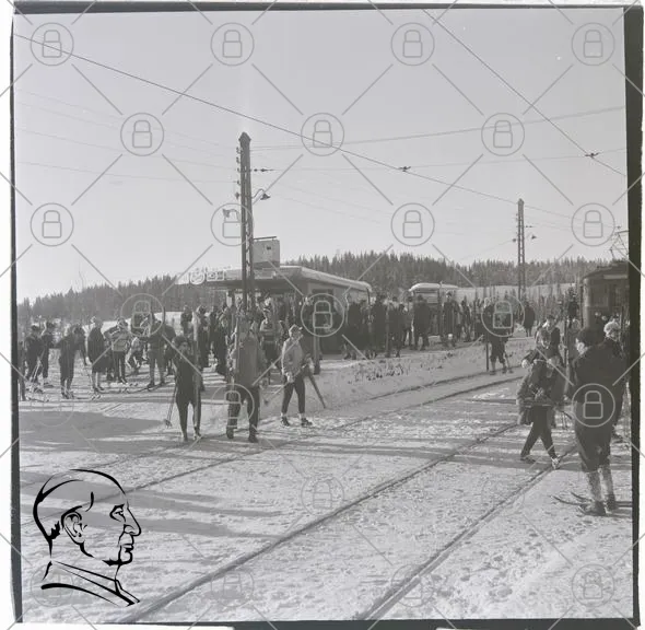 station, människor, vinter, snö, träd, spårvagn, väntande, kollektivtrafik, landskap, byggnader, soligt, svartvitt, resande, plattform, trafik, skidor, sport, utomhus, aktivitet, natur, kommunikation, transport, väntan, folkmassa, vinterkläder, skidor, busshållplats, elektriska ledningar, skugga, landsbygd