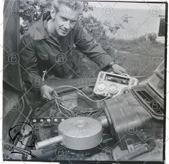 man, bil, motor, verktyg, teknik, mekanik, mätare, 1960-tal, svartvitt, garage, reparation, elektrisk, kabel, maskin, fordon, mekaniker, arbete, utrustning, motorhuv, servicetekniker, vintage, foto, manuell, hobby, ingenjör, motorarbete, bilreparation, mekanisk, mätinstrument, motorutrustning