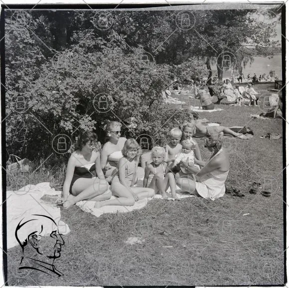 strand, familj, barn, sommar, bad, gräs, sol, lek, badkläder, picknick, natur, glädje, minnen, utomhus, samvaro, svartvit, fotografering, avslappning, vatten, aktiviteter