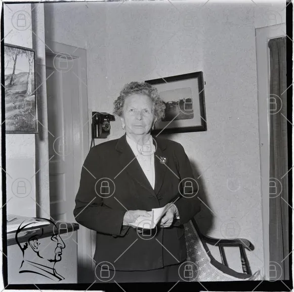 kvinna, kopp, svartvitt, inomhus, gammal, kläder, porträtt, möbler, väggkonst, 1900-tal, sittande, leende, hem, traditionell, fotografi, interiör, stil, vintage, personlig, historia