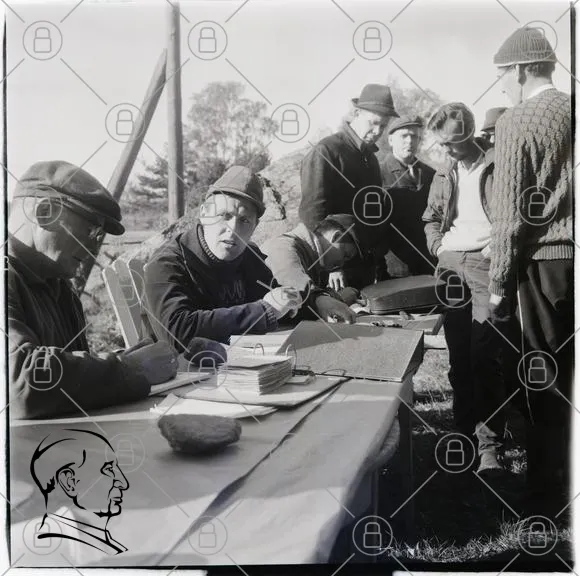 människor, möte, skrivande, anteckningar, bord, hattar, utomhus, svartvitt, diskussion, landskap, kläder, 1900-tal, samling, dokument, fokus, grupp, aktivitet, natur, tradition, historia
