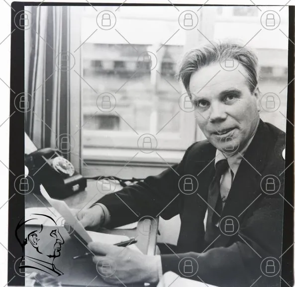 man, kontor, svartvitt, papper, telefon, fönster, skrivbord, kläder, ansikte, dokument, 1950-tal, professionell, affärsmann, uttryck, arbete, stil, retro, inomhus, interiör, belysning, kontorsutrustning, skrivverktyg, fotografi, porträtt, vintage, kommunikation, affärsliv, fokus, detaljer