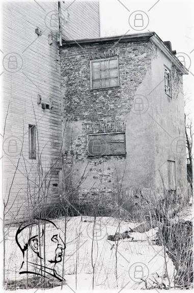 byggnad, gammal, tegel, vägg, fönster, övervuxen, snö, natur, förfall, svartvit, arkitektur, utomhus, rör, brunt, grått, träd, buskar, övergiven, landskap, struktur, detaljer, historia, miljö, vinter, skugga, textur, yta, gammal, hus