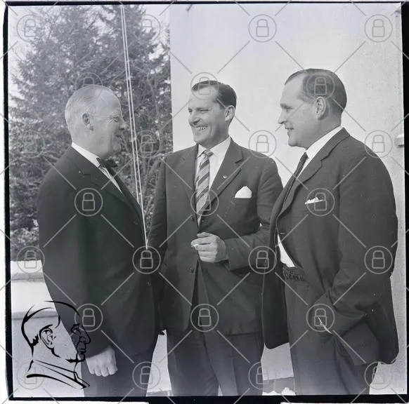 tre män, kostymer, leende, möte, utomhus, träd, svartvitt, 1900-tal, affärsmän, diskussion, vänskap, formell klädsel, fotografi, porträtt, socialt sammanhang, historisk bild, professionellt, samarbete, nätverkande, stil, elegans, tradition, representation, affärsrelationer, gemenskap, interaktion, uttryck, kroppsspråk, bakgrund