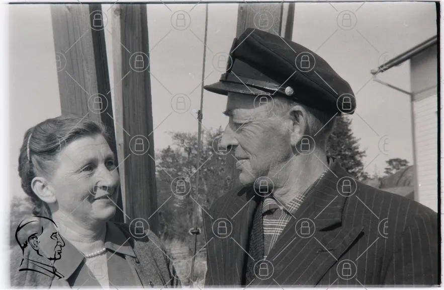man, kvinna, gammal, svartvit, porträtt, kläder, hatt, leende, natur, bakgrund, trä, ansikten, traditionell, par, utomhus, 1900-tal, historia, nostalgi, landskap, fotografi, minnen
