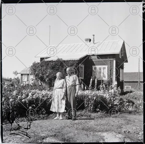 gammal, par, hus, trädgård, blommor, svartvitt, landskap, sommar, traditionell, svensk, byggnad, natur, äldre, människor, utomhus, familj, historia, kultur, idyll, landsbygd, fotografi, minnen, kärlek, samhörighet, enkelhet, livsstil, avkoppling, gemenskap, nostalgi, rural