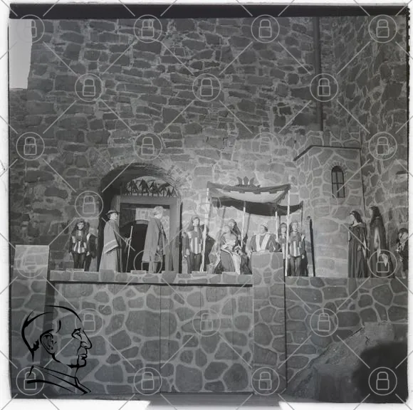 teater, scen, medeltid, kostymer, skådespelare, stenar, byggnad, föreställning, historisk, drama, kläder, rekvisita, publik, teaterpjäs, konst, kultur, tradition, uppträdande, teaterkonst, skådespel, scenografi, ljus, mörker, svartvitt, gammal, teaterliv, rollspel, medeltida, arkitektur, teatergrupp