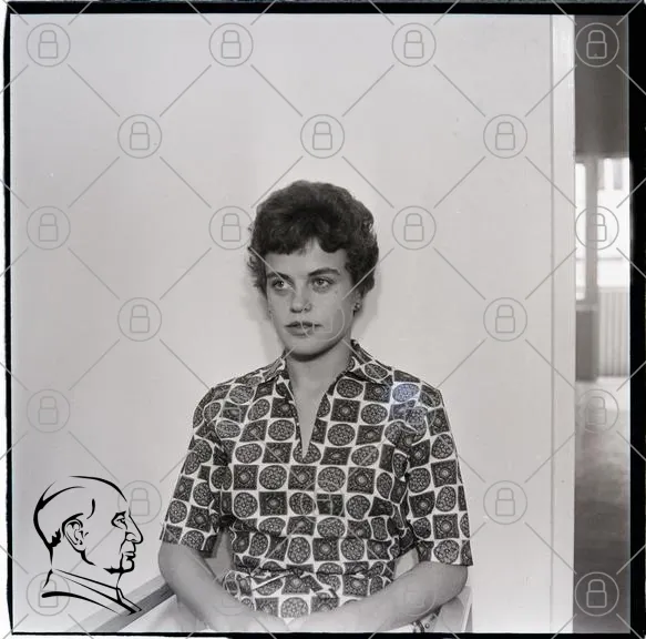 porträtt, kvinna, svartvitt, 1950-tal, kläder, mönster, frisyr, sittande, inomhus, fotografi, vintage, stil, ansiktsuttryck, bakgrund, klassisk, mode, retro, ungdom, naturligt ljus, enkelhet