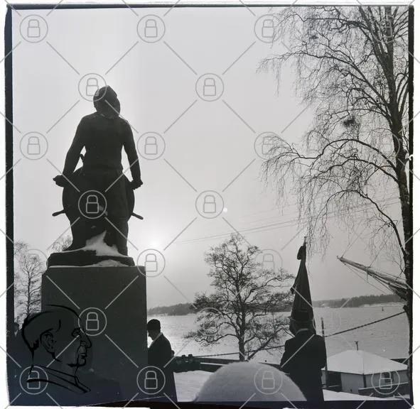 staty, vinter, snö, träd, sjö, flagga, människor, silhuett, himmel, sol, vatten, skulptur, park, landskap, kallt, utomhus, historisk, monument, natur, skymning