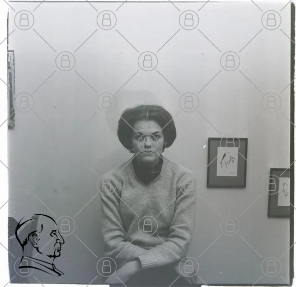 svartvit, kvinna, porträtt, sittande, tröja, 1960-tal, inomhus, vägg, fotografi, retro, allvarlig, stil, vintage, konst, uttryck, rum, möbler, svart, vit, ansikte, blick, kläder, hår, klassisk, tidlös, nostalgi, enkelhet, minimalistisk, atmosfär, känsla, personlighet